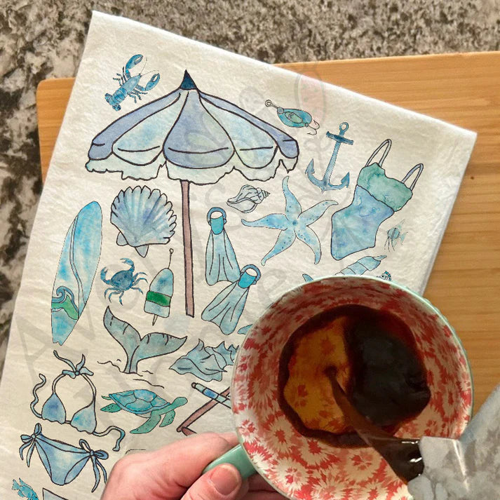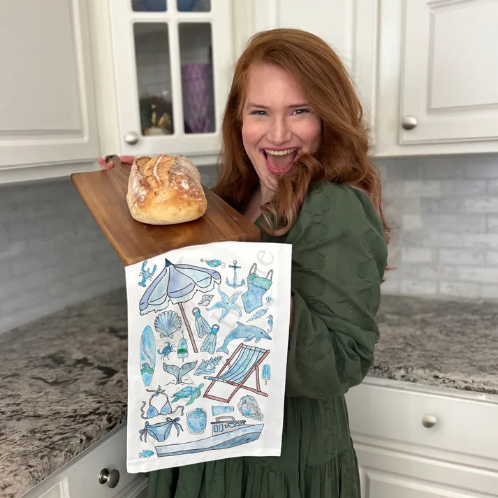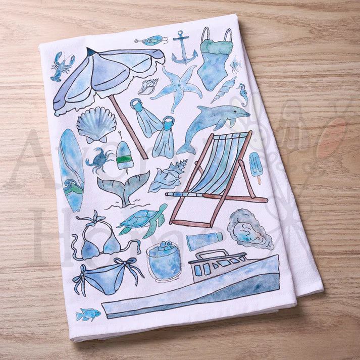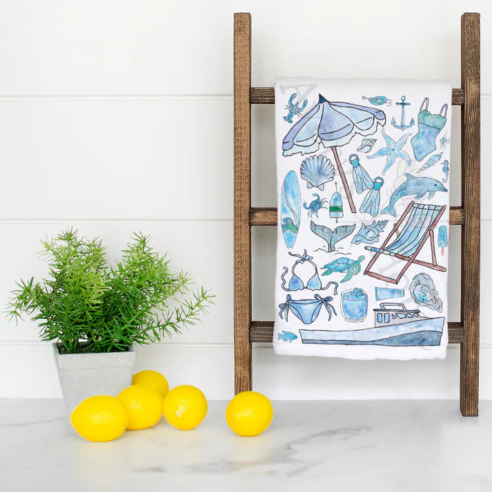 Blue Beach Day Memories Dish Towel