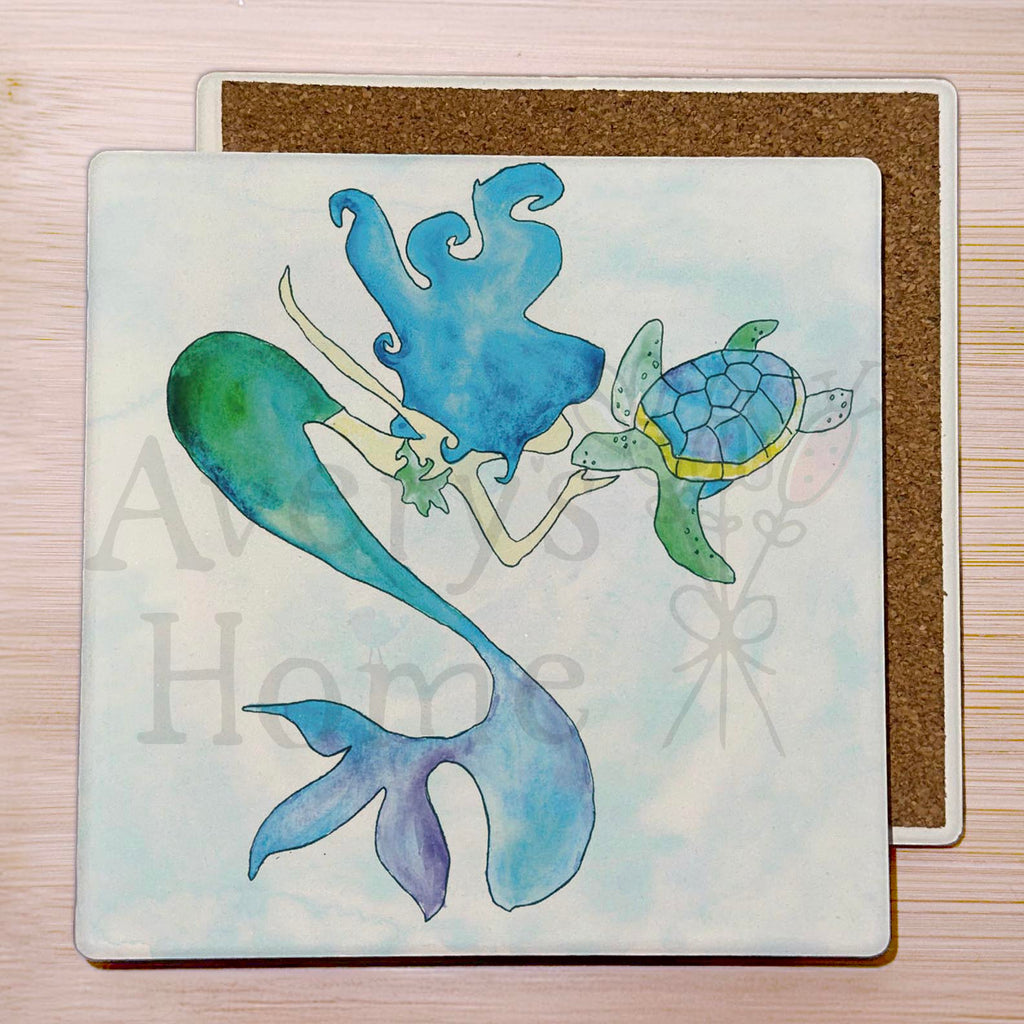 Mermaid & Turtle Customizable Flour Sack Dish Towel