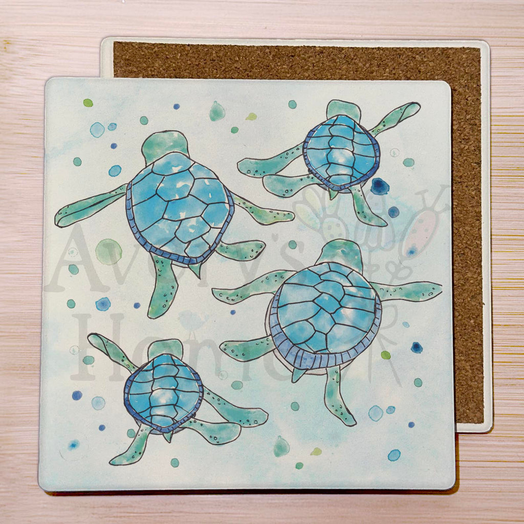 Ocean Blue Sea Turtle Swedish Dish Cloth (Sold as set of 4)