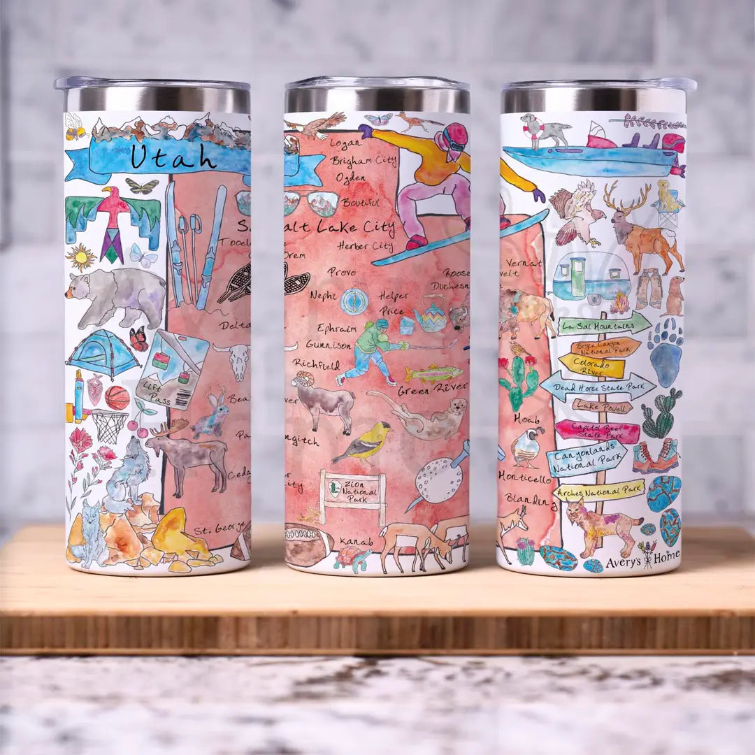 These skinny 20oz tumblers can fit any cup holder or hand comfortably, while looking amazing featuring original artwork by Avery Jackson! Each tumbler is top rack dishwasher safe! These tumblers make inspiring appreciation thank you gifts, housewarming gifts, bridal shower/party gifts, office gifts, souvenirs, birthday gifts or holiday gifts for friends and family. Suitable for any indoor or outdoor spaces.
