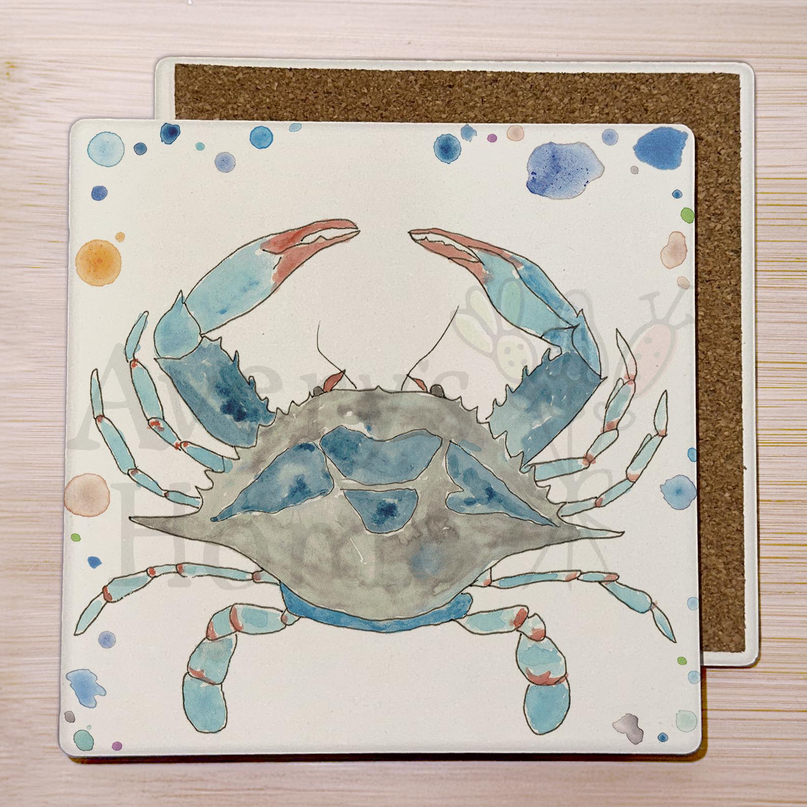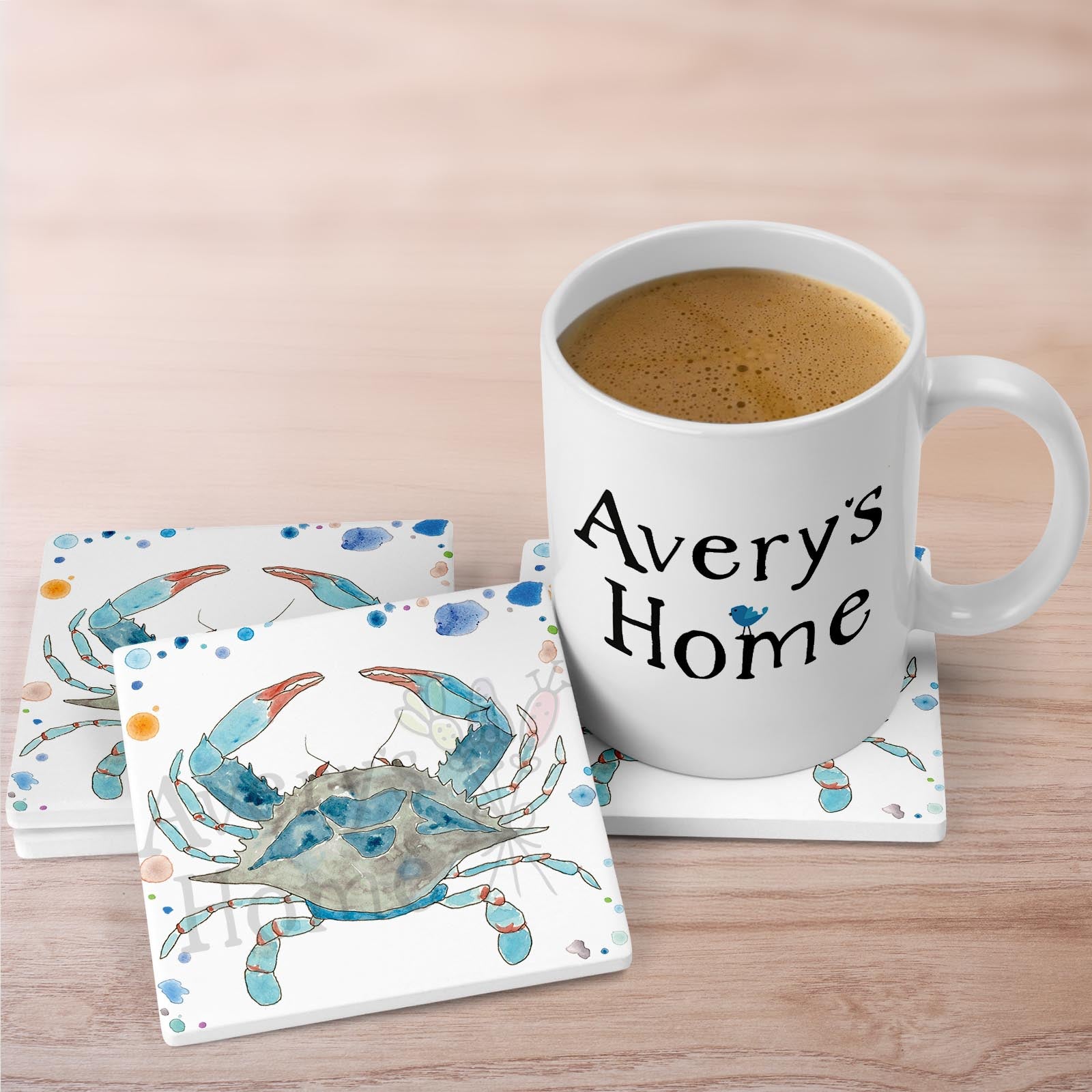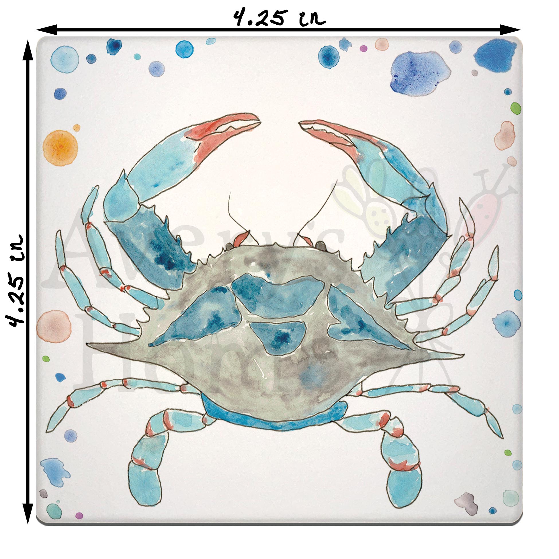 Blue Crab Coastal Absorbent Stone Coaster | Set of 4
