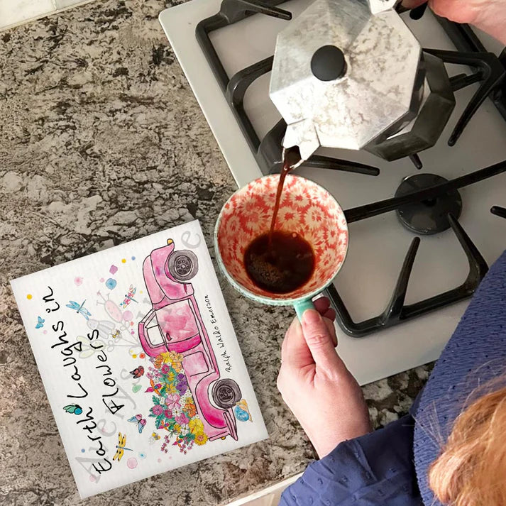 These Swedish dishcloths featuring original art by Avery Jackson are an essential to a clean kitchen. They are machine washable, eco-friendly, and can last several months so you don't have to worry about spills or dirty messes! They are printed via Direct to Garment (DTG) technology with eco-friendly inks. Buy them for yourself or gift them away to your friends & family.