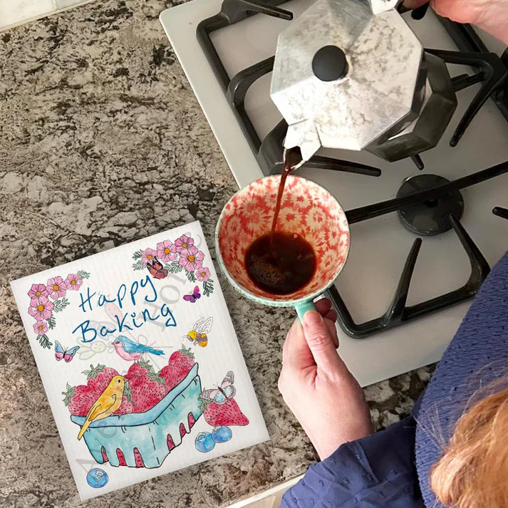 Swedish dishcloths are biodegradable and a must have for your kitchen. They are the perfect replacement for paper towels and sponges or traditional dishcloths. When your dishcloth begins to get dirty, simply toss it in your dishwasher or washing machine to bring it back to life! And when it's finally time to say goodbye to your Swedish dishcloth, you can add it to your compost to reduce waste.