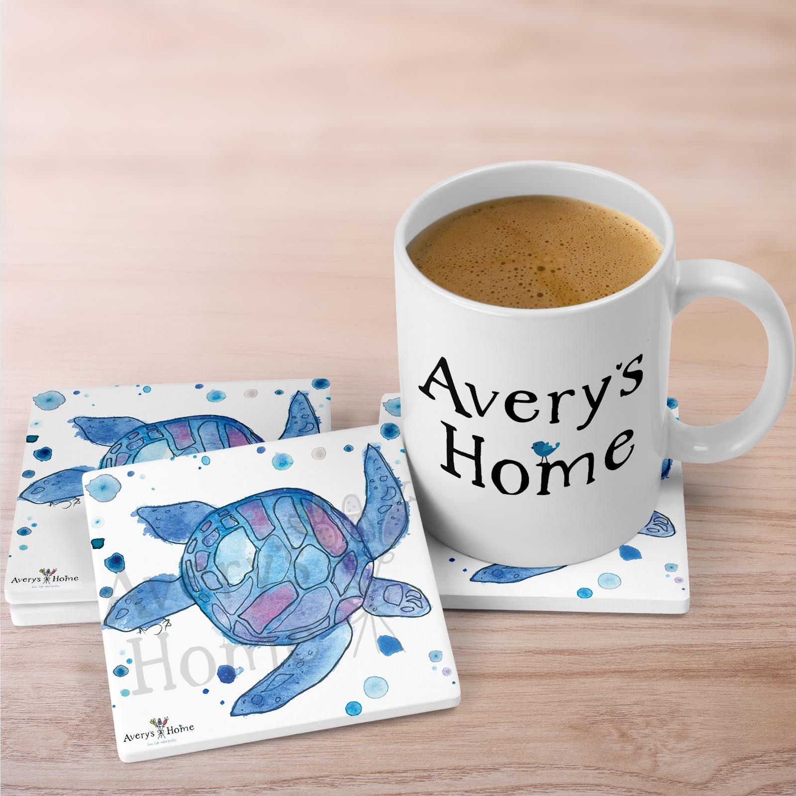 Blue Sea Turtle Absorbent Stone Coaster | Set of 4
