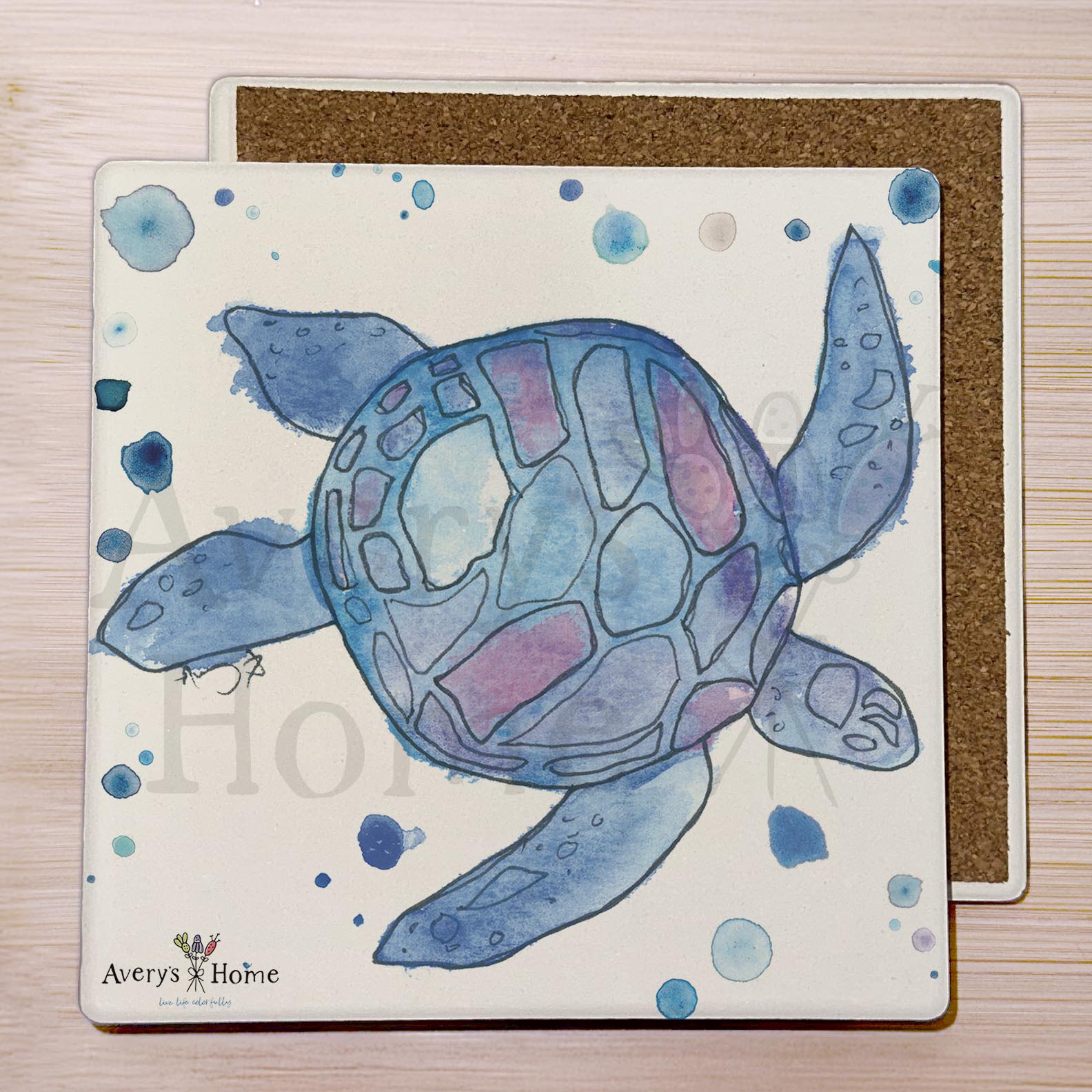 This set of 4 stone coasters add extra color to any table, featuring original art by Avery Jackson. They come with a cork backing so they are safe for a variety of surfaces and actually absorb the condensation from your drinks (so no more coasters stuck on the bottom of your glass)! They are printed via Direct to Garment (DTG) technology and are both water and heat resistant.