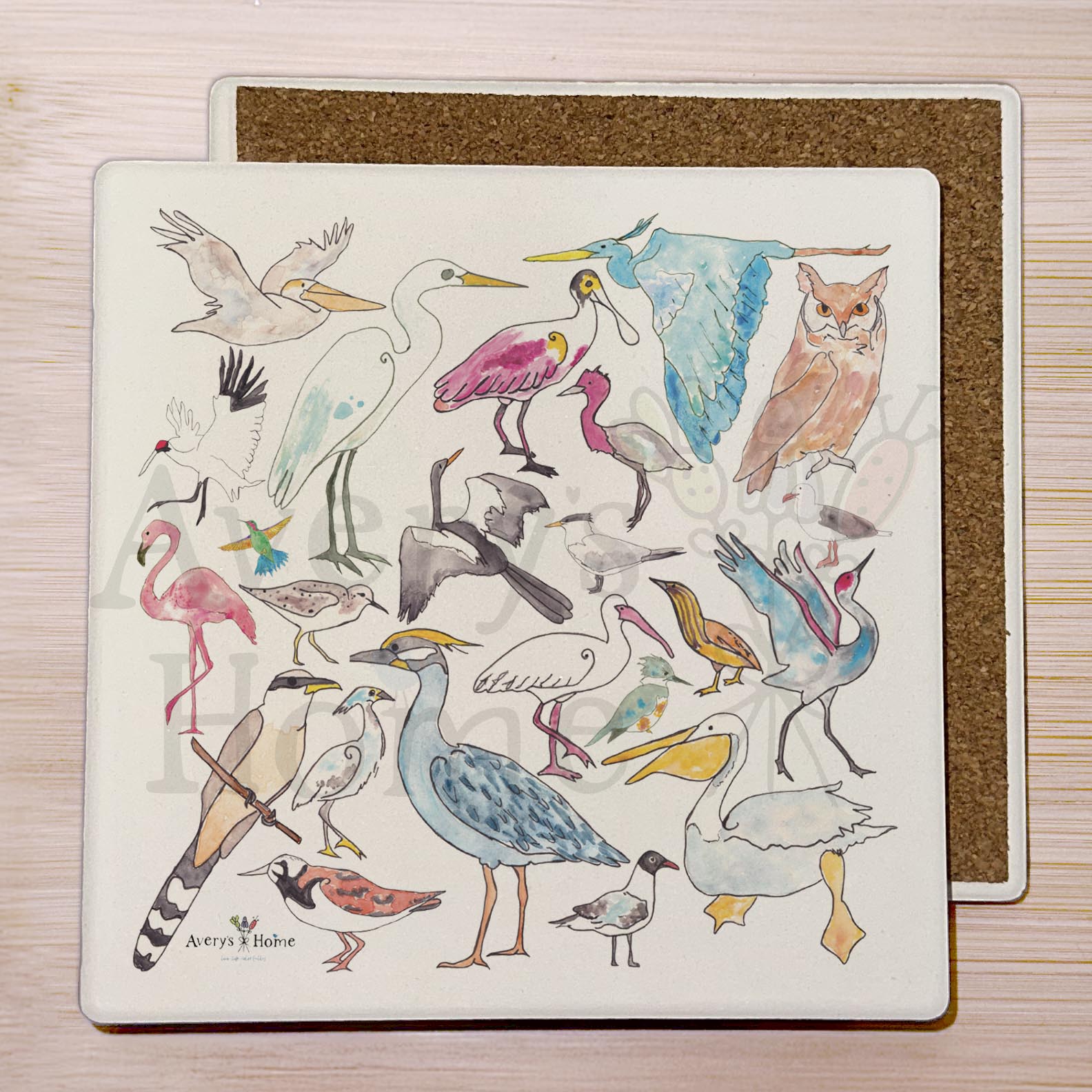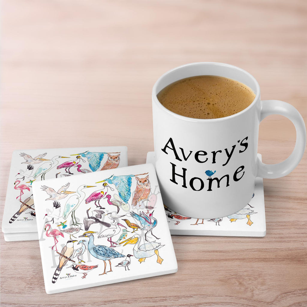 Coastal Birds Absorbent Stone Coaster | Set of 4