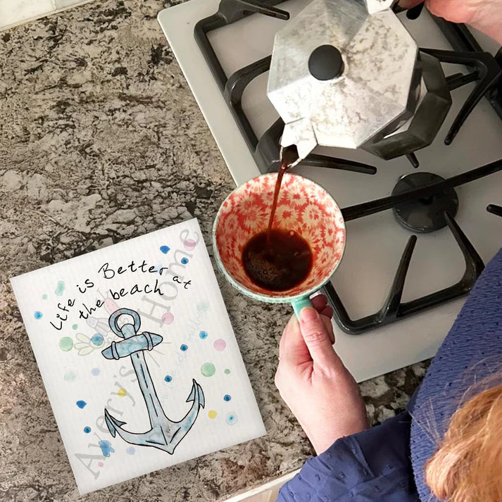 Life is Better at the Beach Anchor Swedish Dishcloth