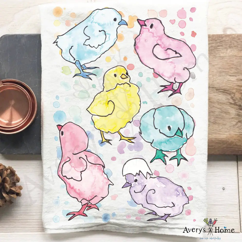 Rainbow Easter Chicks Dish Towel